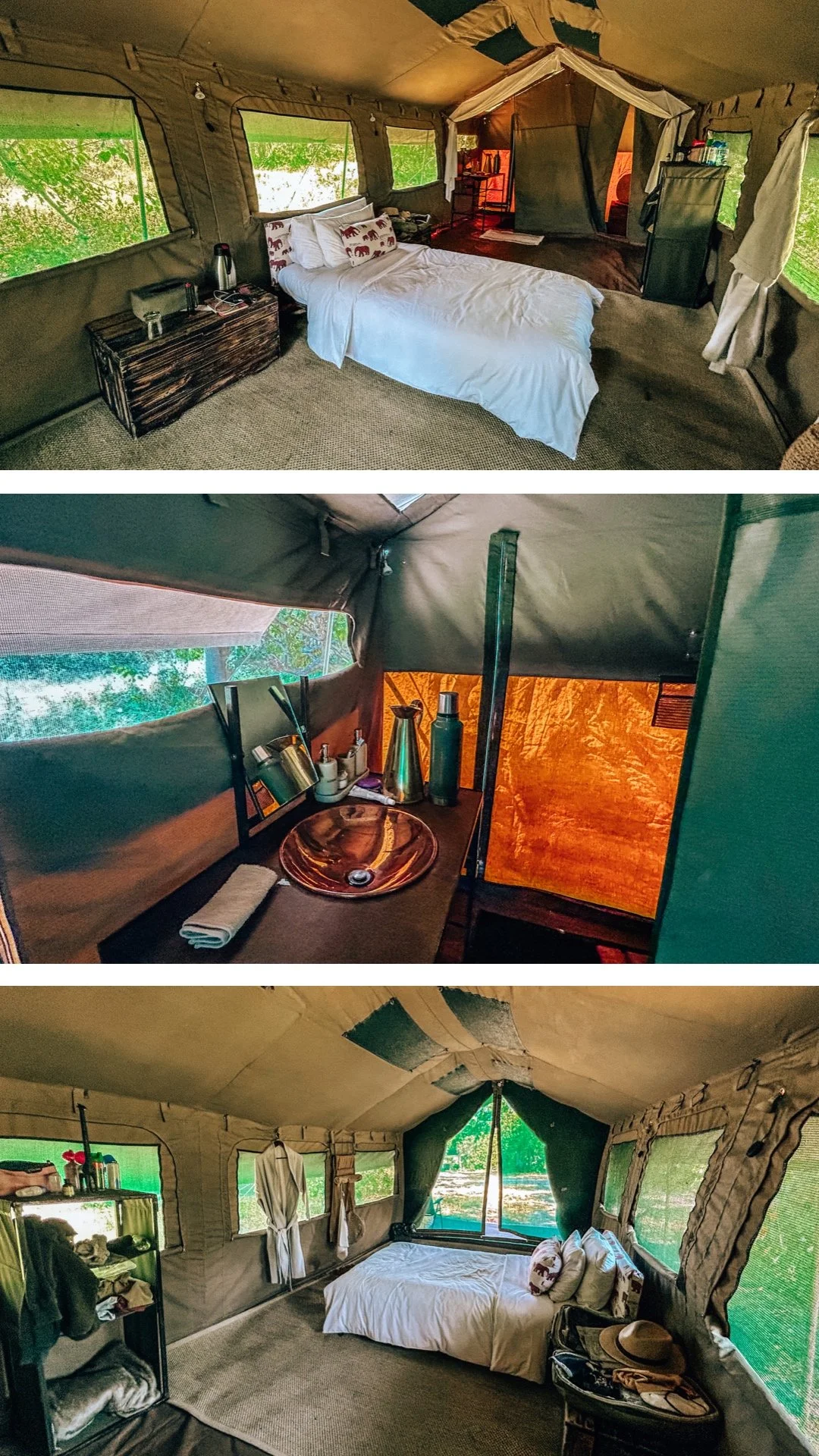 On these roving safaris, you are truly surrounded by nature. No city lights, no traffic noises, no other tourists. They’re not a big box hotel or lodge adorned with all the fancy fixings, these camps are set up specially for your visit and they include everything you need, plus a little extra comfort (though I could argue that those robes are a necessity!). you have bucket showers that are filled with hot water upon request, hot and cold water to pour and wash your face and brush your teeth in your kitted out tent, you have blankets and robes and slippers and lights. You don’t need a fancy lodge to fill your soul, what you really need is nature and what you came here for — the animals.