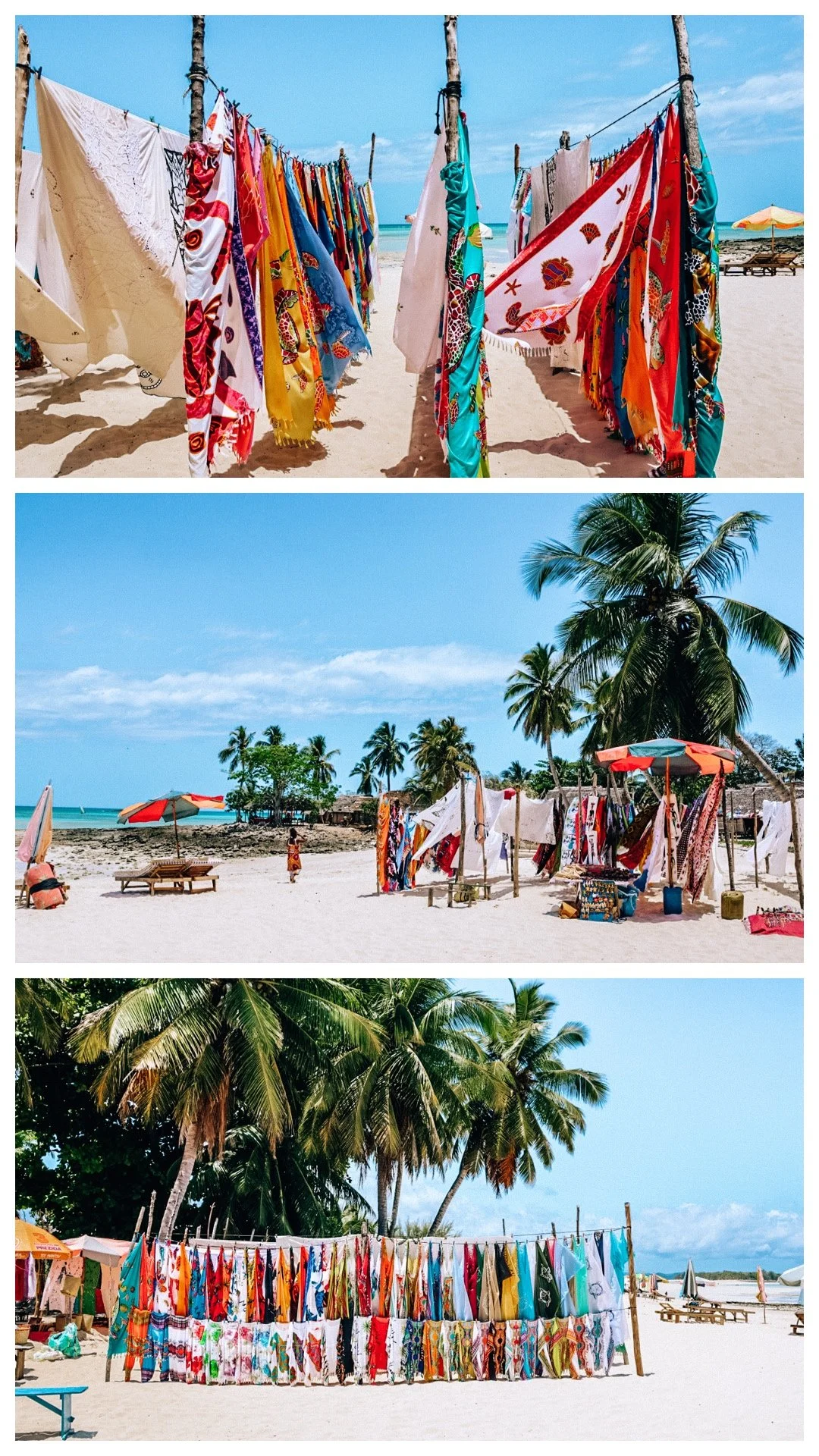We literally just flounced around in the water capturing footage, laying on the soft sand with the waves crashing over me, as the tide went out to reveal another side-sand bar, which was even more beautiful. We had lunch over by the main island, and admired all the beautiful colours of sarongs and table cloths woven from bright local fabrics.