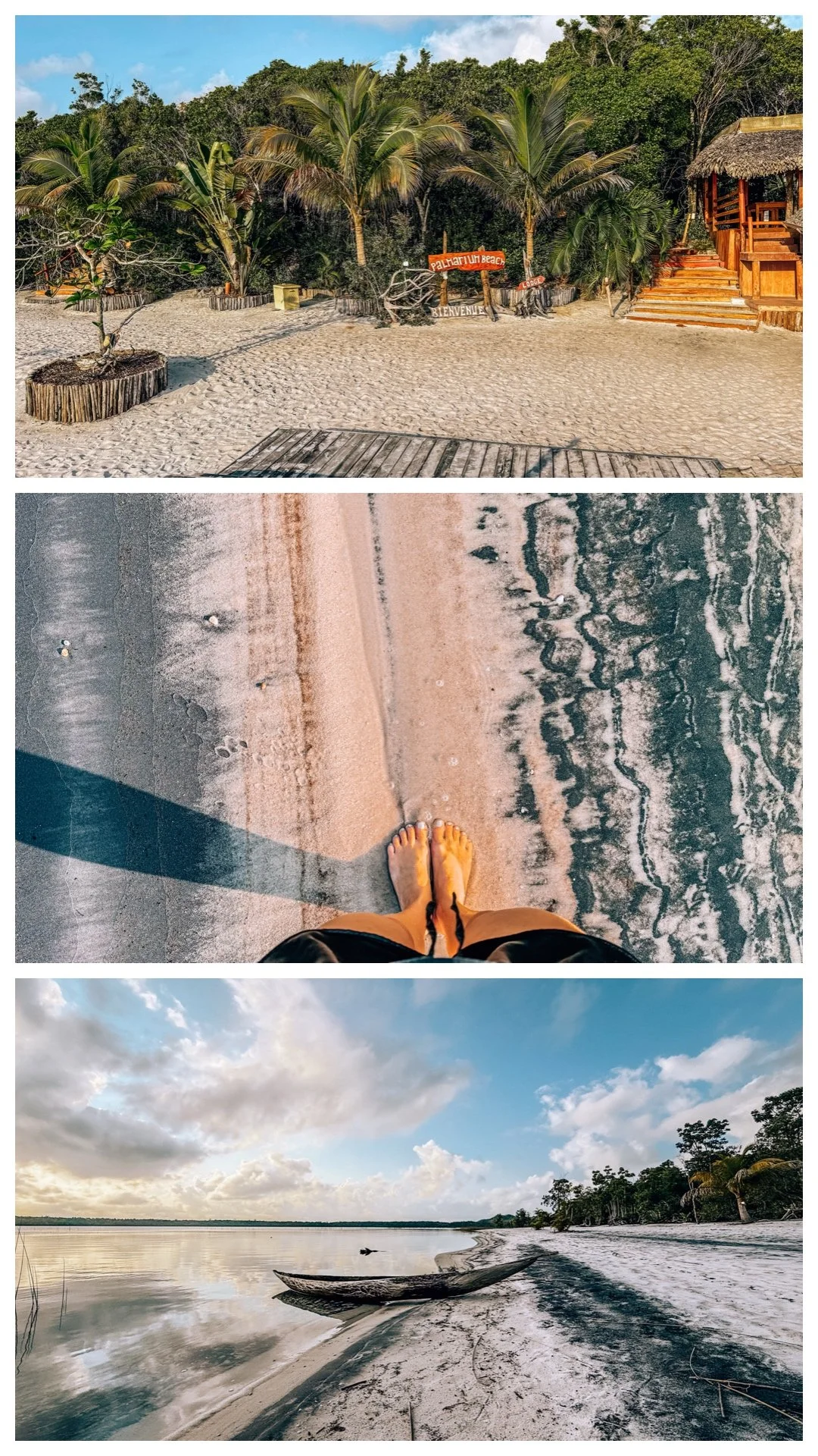 We literally stayed in a bungalow on the beach, I went for a magical sunrise walk the first morning, took in the sights of the black-and-beige swirly sand, the dugout canoe, the reeds growing in the water. It’s rustic and remote and magic.