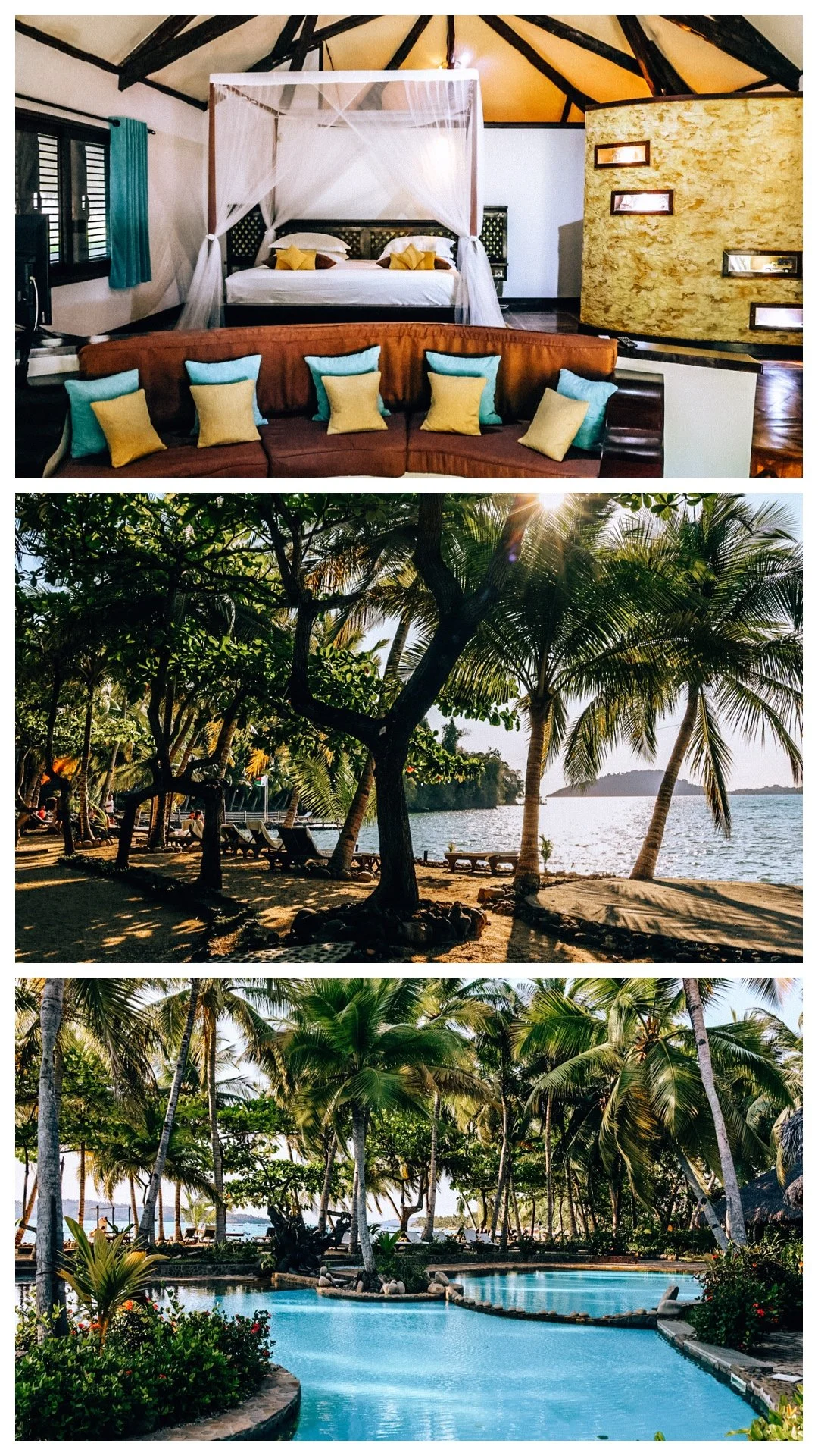 Finally arrived for 3 nights at our final destination of the mainland adventure, and this hotel was GLORIOUS. I honestly can’t fault it — 2 pools, plenty of spaces to chill and find privacy, various dining areas, trees for shade, looking out onto the beach, ocean, and sunset, the rooms were perfect. No notes!!