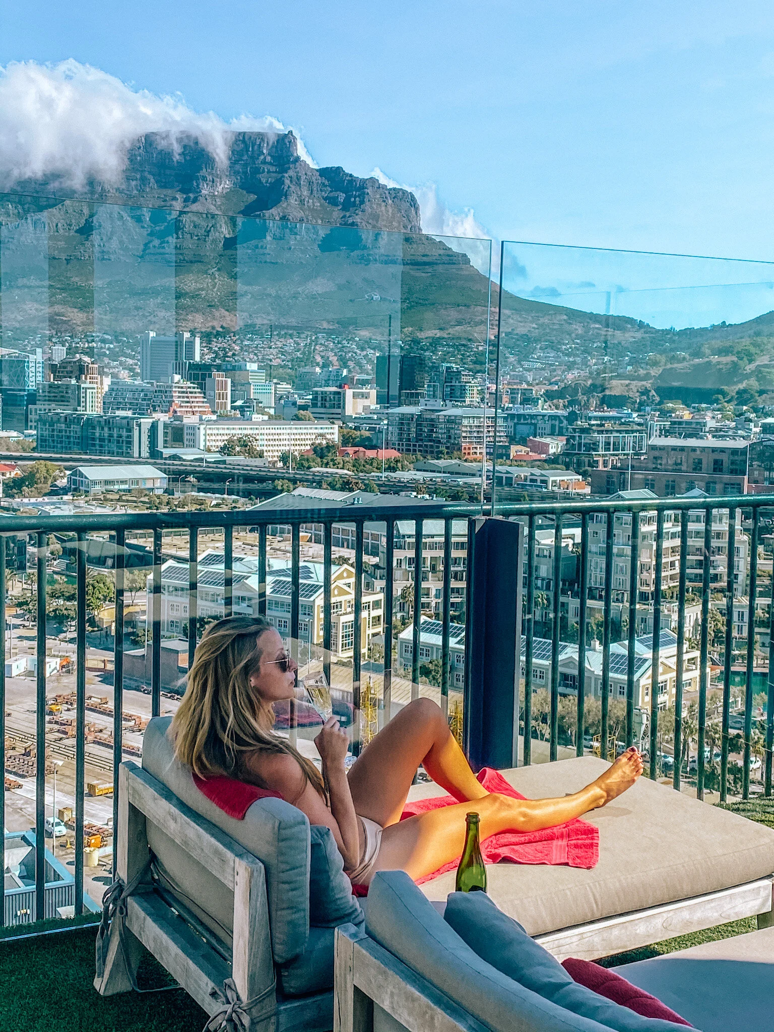 Sitting in my bikini on a rooftop, staring out at one of the New 7 Wonders of Nature (Table Mountain) to my left, my soulmate mountain (Lion’s Head) straight in front of me, the stunning waterfront and marina just below me where seals are playing in the water (they’re waving at me — hi guys!) and this ridiculous infinity pool over to my right.
