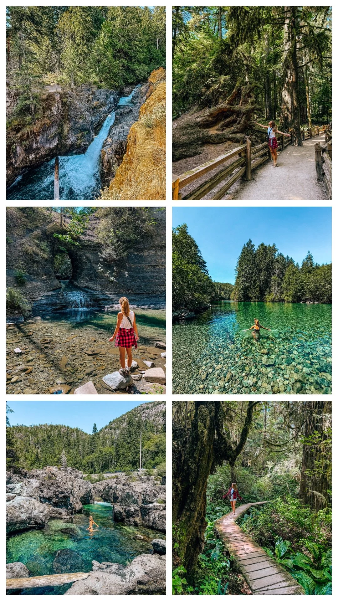 If heading back towards Nanaimo: We stopped for photo opps at the Banzai tree at Fairy Lake (a lil tree growing out of a rock on a lake!), go for a dip in Lizard Lake, hug a tree (from afar) at Harris Creek Spruce.